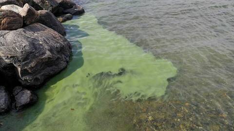 It is often recognized by the discoloration in the water from the algae's pigments.